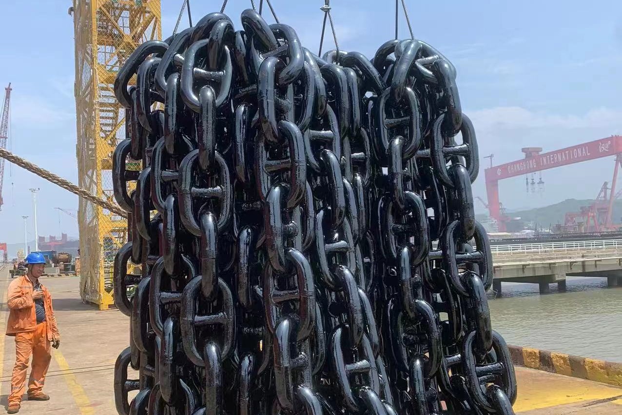Studlink: equipo estándar para grandes embarcaciones (barcos mercantes, embarcaciones oceánicas, buques de guerra). Ventajas del núcleo: alta resistencia, confiabilidad y resistencia a las duras condiciones del mar, lo que proporciona una garantía de seguridad.